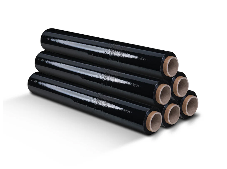 Film Étirable Noir Opaque Le film noir opaque assure une identification rapide des palettes tout en garantissant la discrétion de leur contenu dès trois tours d’emballage.